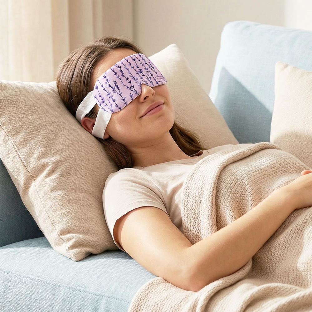 The mask activates on contact, gently warming your eyes to relax muscles and relieve tension for 20–30 minutes of soothing comfort.